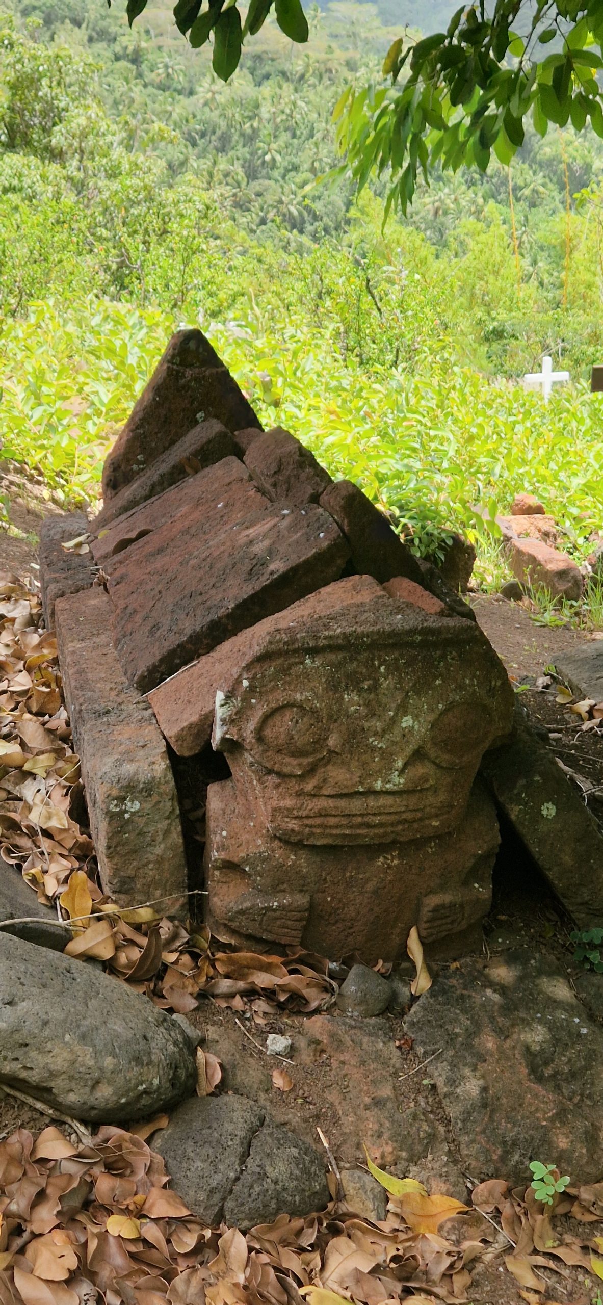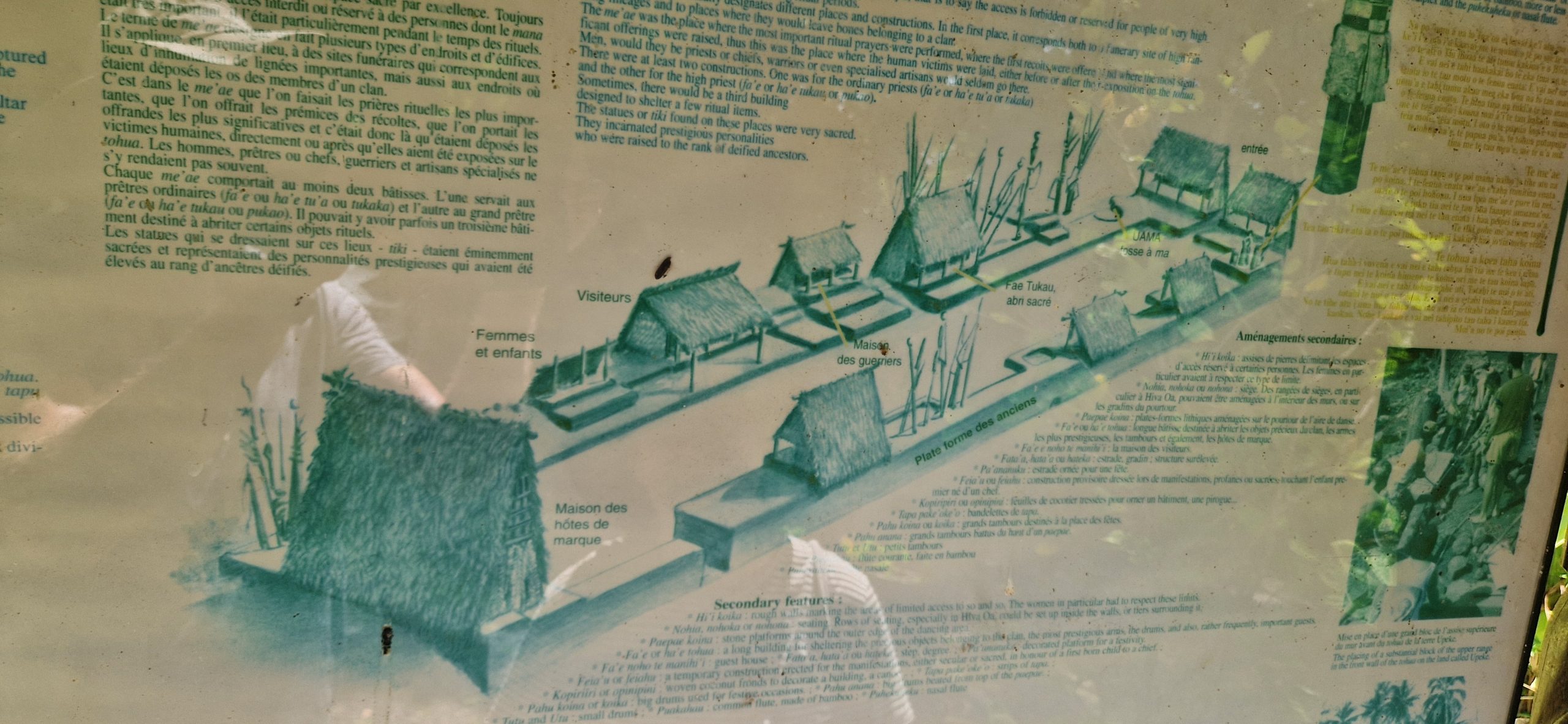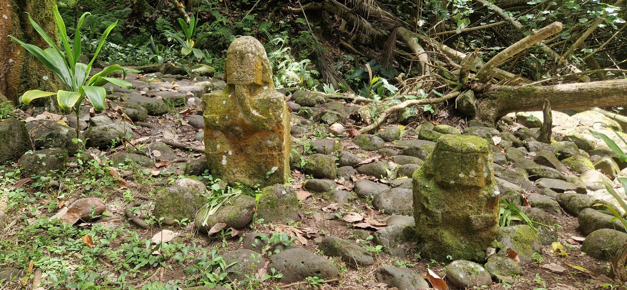 So haben wir uns auch wieder einmal ein Auto für zwei Tage gemietet und sind alle Möglichkeiten auf der Insel abgefahren – vom lachenden Tiki über die archäologische Anlage Ma’ae Lipona, in der das größte Tiki steht, zu den Petroglyphen, dem alten Friedhof von Teivitete und dem Zeremonienplatz von Upeke. Zu Upeke muss man noch sagen, daß nach einer Sage hier der Baum des Lebens gestanden hat in dem alle Vögel brüteten. Als der Baum umgefallen ist, sind die Äste auf die anderen Inseln der Marquesas gefallen, auf denen sich schließlich die Vögel verteilt haben. Anhand dieser Sage kann man erahnen, wie wichtig dieser Ort für die Ureinwohner war, entsprechend groß auch die Anlage, die nur zum Teil freigelegt ist. Ein Großteil befindet sich im Wald und will entdeckt werden. Natürlich haben wir mit dem Auto auch noch unsere Besorgungen erledigt, vor allem die schweren Getränkedosen sind doch einfacher zu transportieren, wenn man einen fahrbaren Untersatz hat und nicht 4 km hin und 4 km zurück laufen muß, da der Hafen/Ankerplatz doch etwas von der Stadt entfernt ist.