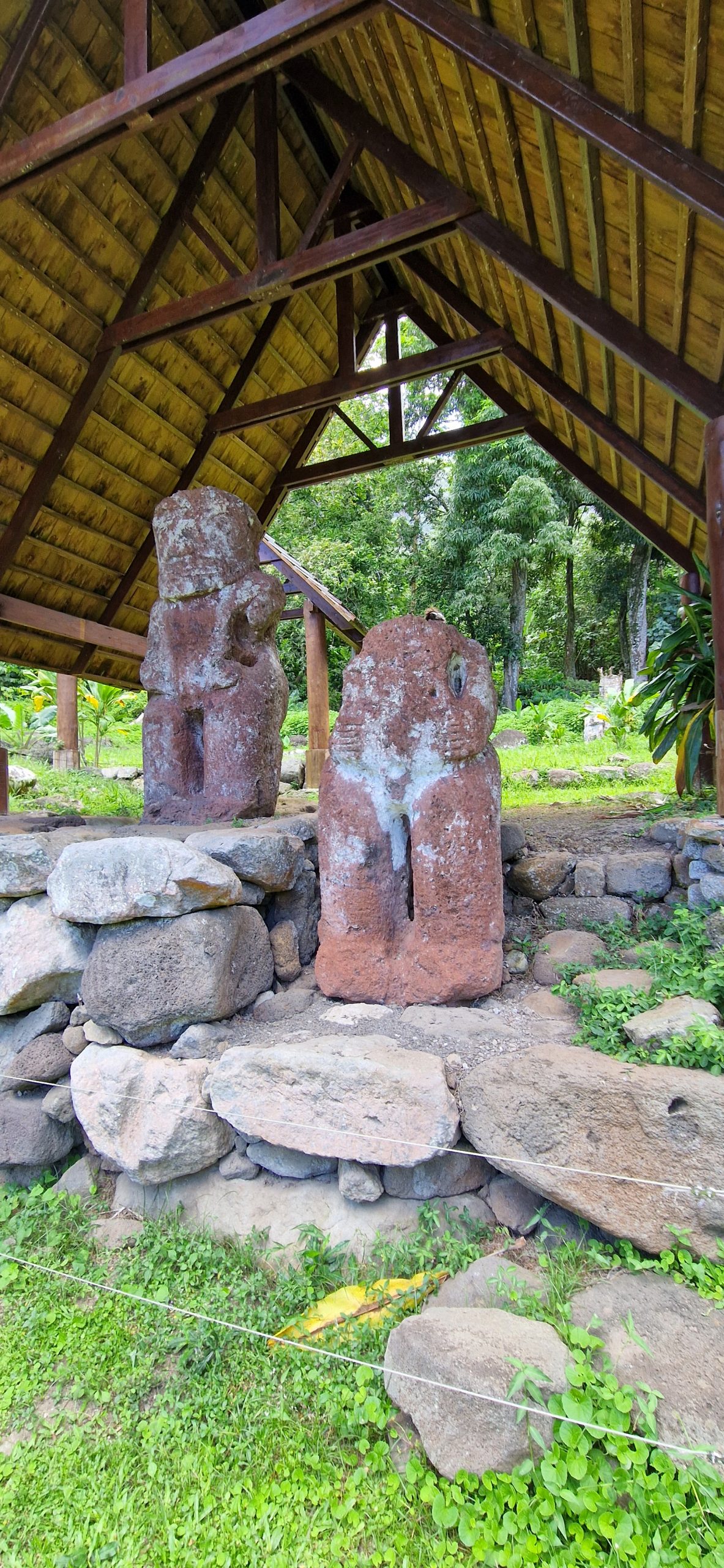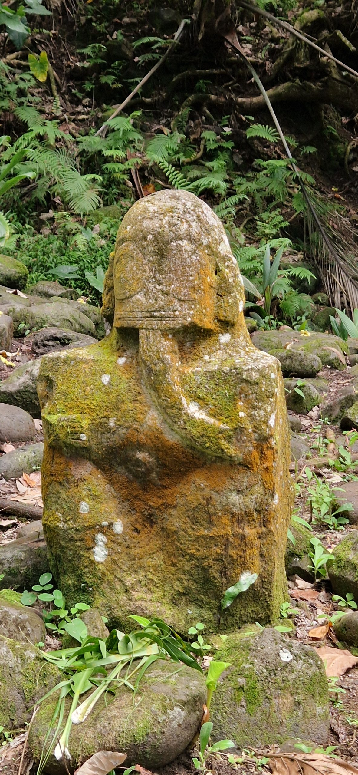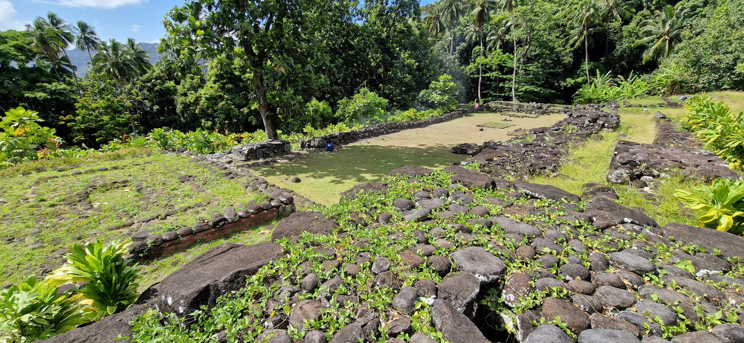 So haben wir uns auch wieder einmal ein Auto für zwei Tage gemietet und sind alle Möglichkeiten auf der Insel abgefahren – vom lachenden Tiki über die archäologische Anlage Ma’ae Lipona, in der das größte Tiki steht, zu den Petroglyphen, dem alten Friedhof von Teivitete und dem Zeremonienplatz von Upeke. Zu Upeke muss man noch sagen, daß nach einer Sage hier der Baum des Lebens gestanden hat in dem alle Vögel brüteten. Als der Baum umgefallen ist, sind die Äste auf die anderen Inseln der Marquesas gefallen, auf denen sich schließlich die Vögel verteilt haben. Anhand dieser Sage kann man erahnen, wie wichtig dieser Ort für die Ureinwohner war, entsprechend groß auch die Anlage, die nur zum Teil freigelegt ist. Ein Großteil befindet sich im Wald und will entdeckt werden. Natürlich haben wir mit dem Auto auch noch unsere Besorgungen erledigt, vor allem die schweren Getränkedosen sind doch einfacher zu transportieren, wenn man einen fahrbaren Untersatz hat und nicht 4 km hin und 4 km zurück laufen muß, da der Hafen/Ankerplatz doch etwas von der Stadt entfernt ist.