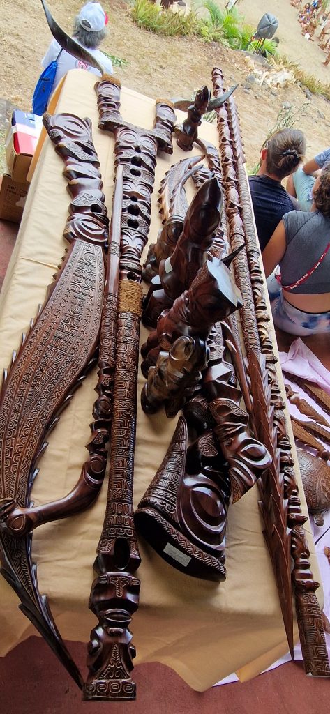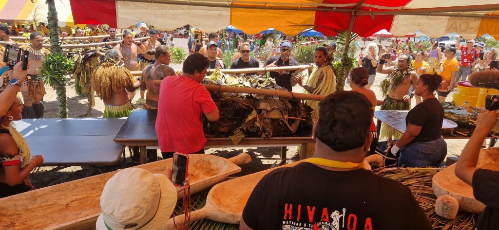 Dieses Festival wurde 1986 eingeführt, um die Traditionen zu bewahren und weiterzugeben. Dies ist ein Festival der Marquesas und jede Insel schickt eine Delegation, die hier einen „Tanz“ aufführt. Ebenso sind von den einzelnen Inseln die diversen Kunsthandwerker vor Ort und verkaufen ihre Waren. So sind hier Tiki’s (Skulpturen aus Holz oder Stein), Tapa’s (gemalte Bilder auf Rinde), Schmuck, Vanille, Hüte, Taschen und vieles mehr zu bekommen. Ebenso sind Tattookünstler vor Ort und arbeiten an der tollen polynesischen Körperkunst. Kleine Info am Rande, die Marquesas sind seit kurzeml auch in der Liste der UNESCO Weltkulturerbe aufgenommen.