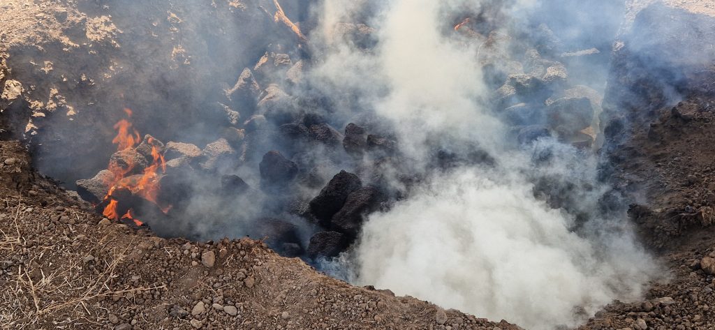 und hier nun mal die Abfolge eines Erdofens in Bildern: